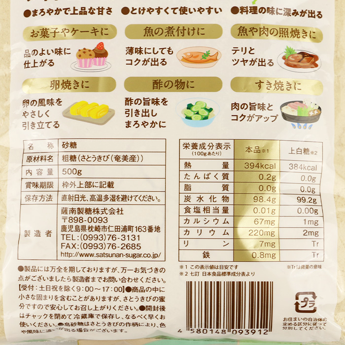 奄美産さとうきび原料100%使用。溶けやすくまろやかでコクのある美味しいお砂糖です。お料理からお菓子作りなど幅広くご利用ください。 南国の太陽と黒潮の風に育まれた、奄美産のさとうきび原料100%。新鮮なさとうきびを搾って作った原材料を、熟練の職人たちが丁寧に釜で焚き上げました。さとうきびの風味を活かした、自然で上品な甘さが自慢のお砂糖です。 島砂糖の魅力 3つのポイント ポイント1 南国の太陽と黒潮の風に育まれた奄美産のさとうきび原材料100%のみを使用したお砂糖です。新鮮なさとうきびを搾って作った粗糖を熟練の職人たちが丁寧に釜で炊き上げています ポイント2 さとうきび特有の風味を活かし、また結晶が細かく溶けやすいお砂糖です。まろやかでうまみのある上品な甘さが特徴で、島砂糖独特の深みのある味に仕上がっています。 ポイント3 シンプルな味付けでも、素材本来の味を引き立てながら料理にコクや深みを与えてくれるのが島砂糖の特徴。甘さだけでなく、うまみがあるため、いつもの定番メニューを、島砂糖に代えるだけでワンランク上の味に仕上がります。 |